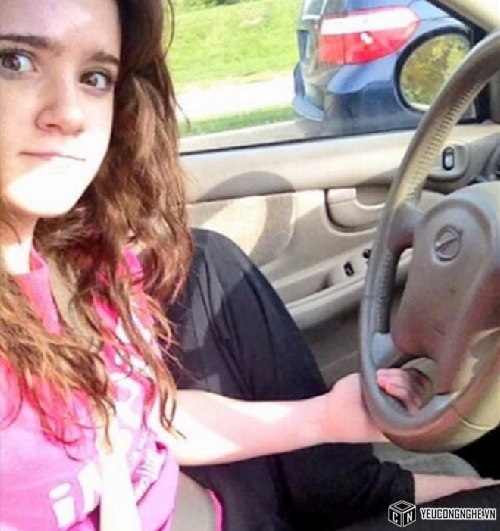 Cô gái này từng bị dân mạng ném đá trong một thời gian dài do bất chấp nguy hiểm, vô tư chụp ảnh trong khi đang lái xe. Thậm chí, một chân của cô còn co lên đặt trên ghế.