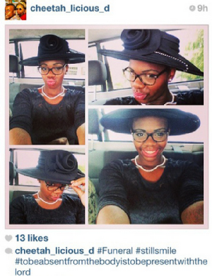 Một cô gái khác cho thấy sự thiếu hiểu biết khi chụp ảnh ngay trong đám tang của người thân và còn cho thấy mình vẫn có thể cười.