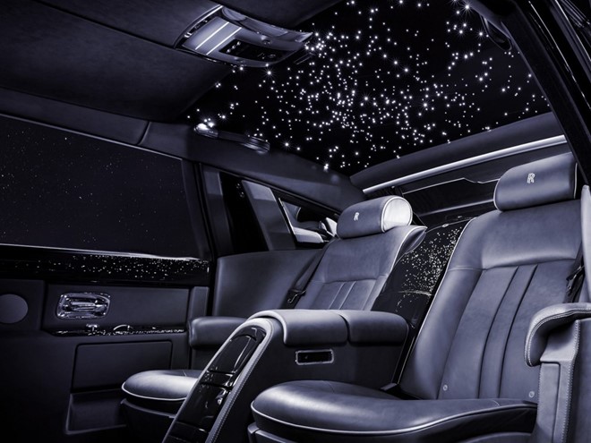 Những chiếc Rolls Royce trở nên thoáng đãng hơn nhờ được gắn hàng nghìn bóng đèn LED phía trên trần. Gói tùy chọn “Starlight Roof” trên Rolls Royce Phantom có chi phí lên tới 12.350 USD. Rolls Royce tuyên bố rằng mỗi chòm sao hoàn toàn khác nhau và mất 17 giờ để hoàn thành. 1.340 bóng đèn được lắp đặt bằng tay bởi những nghệ nhân hàng đầu thế giới mà không có hãng nào làm được.
