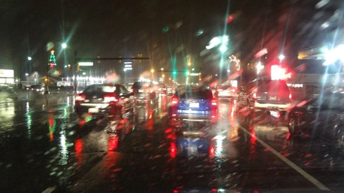 Dầu của xe có thể xuất hiện trên mặt đường tại các nút giao nhau. Loại chất lỏng này khi gặp nước có thể trở nên nguy hiểm không kém một lớp băng mỏng trơn trượt. Vì thế nên giảm tốc độ.