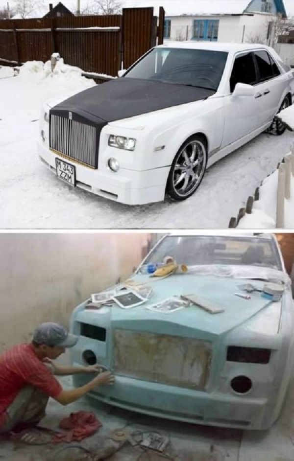 “Phải lòng” Phantom kể từ khi được nhìn ngắm chiếc xe này trong một buổi tối tại thư viện địa phương, Ruslan Moukanov cũng biết rõ rằng mình không thể bỏ ra 500.000 euro để mua chiếc xe này. Với kỹ năng cơ khí siêu hạng của mình, anh chàng người Kazakhstan này đã tự xây dựng ra một lớp vỏ Phantom cho một chiếc Mercedes cũ kĩ. Giá thành: 3000 euro.