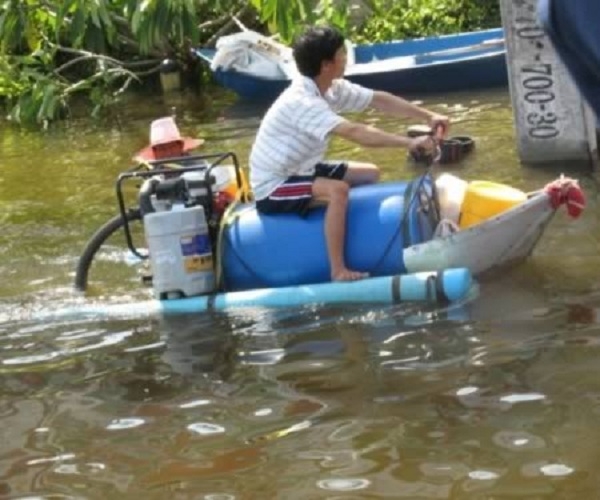 Thùng rỗng + máy bơm -> ca nô tự chế. Chỉ có tại Thái Lan.