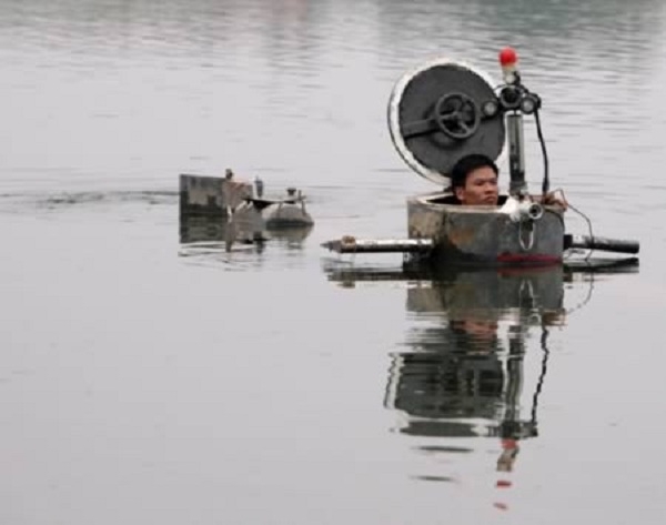 Một nhà sáng chế Trung Quốc mang tên Tao Xiangli đã tốn vài năm, cộng với 4.385 đô la chi phí, để tạo ra cho mình một chiếc tàu ngầm từ máy kéo, mô tô điện, kính tiềm vọng và khoang chứa.