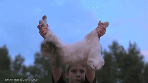 Smarter Every Day đã chứng minh điều này thông qua một cảnh quay slow-mo, loài mèo luôn luôn sử dụng cơ thể rất linh hoạt, chúng vặn người để điều chỉnh lại tư thế khi ngã xuống - một khả năng bẩm sinh gọi là "phản xạ vặn mình".