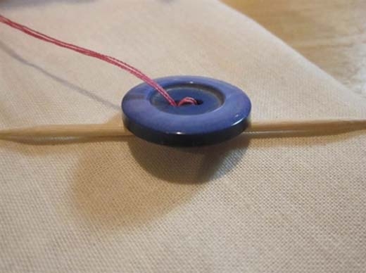 Dùng tăm để tạo khoảng trống giữa vải và nút, bạn sẽ khâu nhanh hơn.