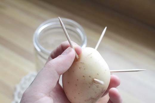 Bạn muốn khoai tây chín và lột vỏ đều trong lò vi sóng? Hãy dùng 4 cây tăm xiên vào củ tạo thành 4 chân để nâng củ khoai lên cao hơn. Như vậy, nó sẽ chín nhanh và đều hơn rất nhiều.