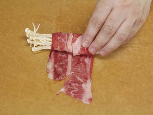 Để cuộn nấm kim chi này không bị rớt ra, bạn hãy dùng một chiếc tăm xiên qua nó sau khi cuộn xong nhé!