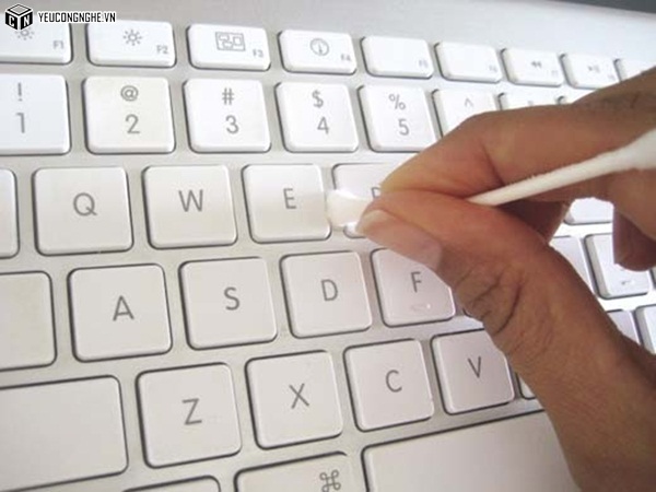 Quấn một đầu tăm bằng bông gòn thấm với cồn sẽ giúp lau sạch các lớp bụi bẩn lâu ngày trong bàn phím máy tính và những kẽ li ti của điện thoại.