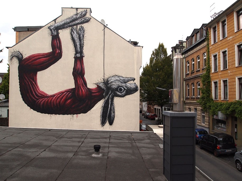 Nghệ sĩ người Bỉ - ROA đã tạo nên những bức ảnh khổng lồ ngay tại nơi công cộng, gây nên sự sửng sốt cho mọi người. Những bức ảnh minh họa một các chân thực những cái chết thương tâm của những loài vật mà thủ phạm không ai khác chính là...con người.