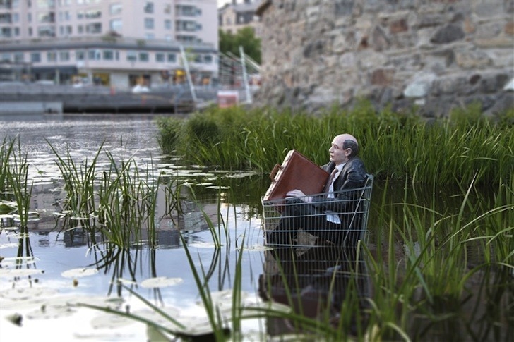 Trong đầu năm 2014, nghệ sĩ Issac Cordal đã tạo ra những công trình nghệ thuật để minh họa cho hiểm họa mà con người phải gánh chịu do biến đổi khí hậu. Điều đặc biệt là những người gặp nạn ở đâu là những chính trị gia, doanh nhân, hay các nhà khoa học, những người được xem như tầng lớp "đứng đầu" xã hội, họ phải là những người phải chịu trách nhiệm trước tiên, chứ không phải là những tầng lớp dân thường trong xã hội.
