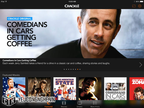 Crackle là một trong những ứng dụng xem phim và chương trình TV miễn phí tốt nhất trên iPad. Ứng dụng này cung cấp một lượng lớn các nội dung để xem. Bằng cách nhấn vào “Movies”, bạn có thể xem những bộ phim nổi bật, phổ biến nhất còn nếu nhấn vào "TV Show”, bạn có thể xem các chương trình truyền hình, tài liệu hay âm nhạc.