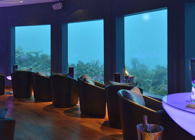 | 12. Câu lạc bộ và bar dưới nước Subsix - Maldives: Subsix là bar và câu lạc bộ dưới nước đầu tiên trên thế giới. Đến đây bạn có thể ngắm các sinh vật biển dưới lòng Ấn Độ Dương khi đang tiệc tùng với bạn bè.