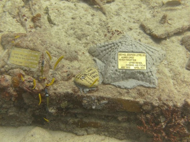 | 3. Nghĩa trang Neptune Memorial Reef - Key Biscayne, Florida, Mỹ: Nằm cách không xa Miami, nghĩa trang Neptune Memorial Reef là khu lăng mộ dưới nước đầu tiên trên thế giới lưu giữ tro cốt sau khi người chết được hỏa táng. Thay vì rải tro xuống biển, người ta có thể giữ phần tro cốt của người thân và trộn với xi măng (được thiết kế để dùng dưới nước) rồi gắn vào một chiếc khuôn, sau đó thợ lặn sẽ chọn địa điểm và đóng chặt vào các rạn san hô.