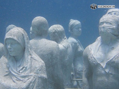 | 1. Bảo tàng dưới nước MUSA - Cancun, Mexico: Bảo tàng MUSA là nơi trưng bày hàng loạt tác phẩm của nhà điêu khắc người Anh - Jason deCaires Taylor trong vùng nước nông giữa Cancun và Isla de Mujeres, bang Quintana Roo. Các tác phẩm điêu khắc được làm từ bê tông có mục đích tạo môi trường thuận lợi cho các sinh vật biển cư trú sau khi các cơn bão phá hoại các rặng san hô dưới biển. |