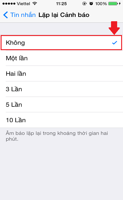 Cách khắc phục: Để dừng chuỗi hành động này của iPhone, bạn cần vào Cài đặt > Trung tâm Thông báo. Kéo xuống mục "Bao gồm" và chọn "Tin nhắn". Tiếp tục kéo xuống và nhấn vào "Lặp lại Cảnh báo". Thao tác cuối cùng, chọn "Không" để iPhone không lặp lại báo hiệu trong các lần sau.