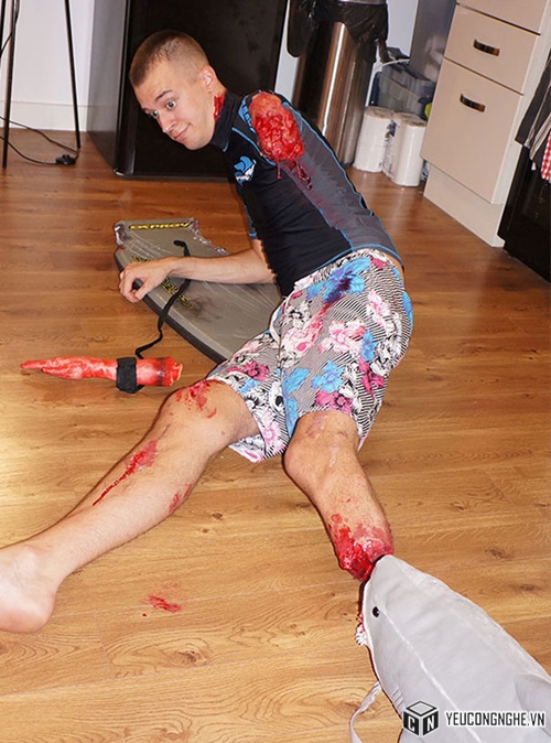 Cánh tay của anh ấy bị cắn bởi cá mập