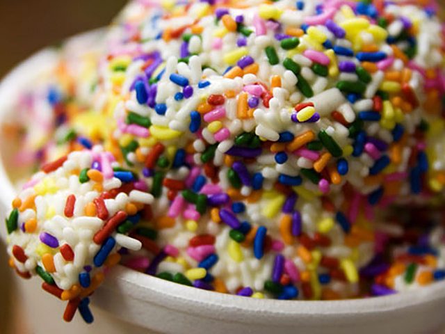 Không như bạn nghĩ, những viên cốm sặc sỡ này sẽ rất khó bám lên kem thật. Vì vậy, thay vì những viên kem mát lạnh, giấy vệ sinh sẽ được nhúng ướt và... độn vào bên trong những cốc kem.