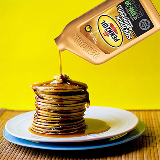 Đặc biệt, việc sử dụng dầu máy thay cho siro dường như là sự lựa chọn hàng đầu và bất khả kháng để cho ra những bức ảnh quảng cáo pancake nịnh mắt nhất có thể.