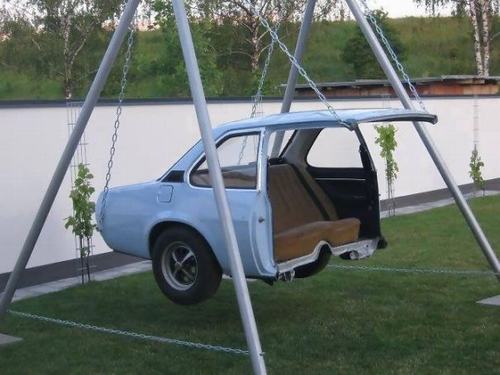 Đuôi một chiếc xe được tận dụng làm xích đu.