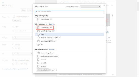 Nhấn tổ hợp phím "Ctrl+P" (Windows) hoặc "Cmd+P" (Mac) rồi chọn "Lưu dưới dạng PDF" trong danh sách các máy in hiện ra ở phần "Máy in đích" để lưu lại trang web dưới dạng PDF.