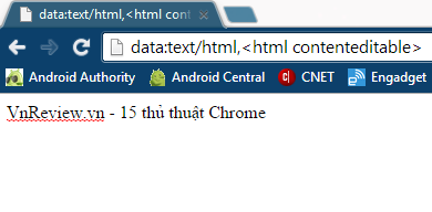 Chrome có một mã JavaScript đặc biệt đã bị giấu đi giúp bạn biến trinh duyệt trở thành một trinh soạn thảo văn bản để ghi chú tương tự như Notepad. Bạn hãy nhập link sau vào thanh địa chỉ: "data:text/html,<html contenteditable>", rồi nhấn vào bất kỳ đâu trong tab, khi đó bạn có thể nhập nội dung bình thường.