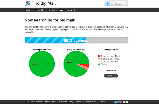 Nếu bạn đang sắp hết dung lượng Gmail thì có lẽ lý do hầu hết là bởi những email có tệp đính kèm quá lớn. Find Big Mail, đúng như tên gọi, có nhiệm vụ scan hết các email của bạn và giúp bạn thải hồi bớt những email hạng nặng, tăng được đáng kể dung lượng cho hòm mail.