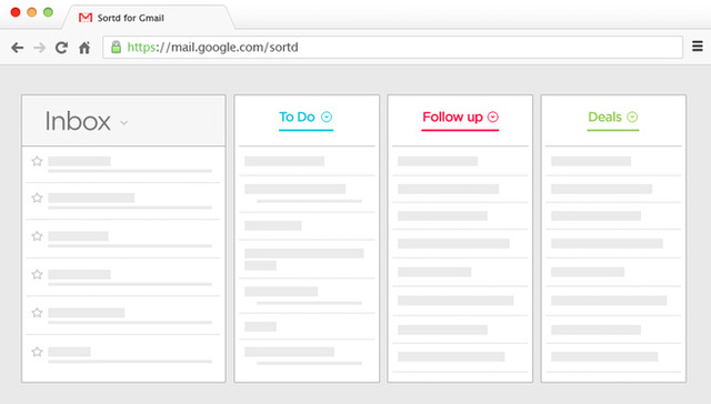 Sortd là giao diện thông minh cho Gmail có khả năng biến hòm mail của bạn thành các danh sách những việc bạn cần làm hay đang theo dõi. Bạn có thể tùy chỉnh tên các danh sách, thêm bao nhiêu task tùy thích, kéo thả mail vào các danh sách để tiện theo dõi,… Nhìn chung với Sortd, bạn có thể sắp xếp lại hòm mail của mình một cách gọn gàng như một bảng nhắc việc hiệu quả.