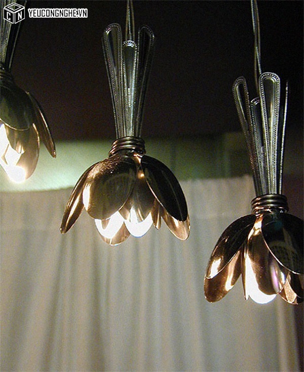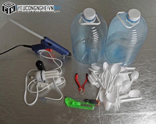17. Dùng những thìa dùng 1 lần và chai nước để làm đèn