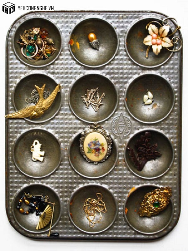 8. Dùng khay cupcake để sắp xếp đồ trang sức