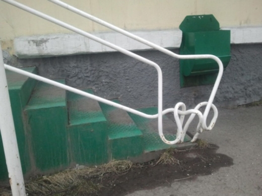 Tay vịn cầu thang xoắn một cách khó giải thích.