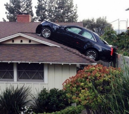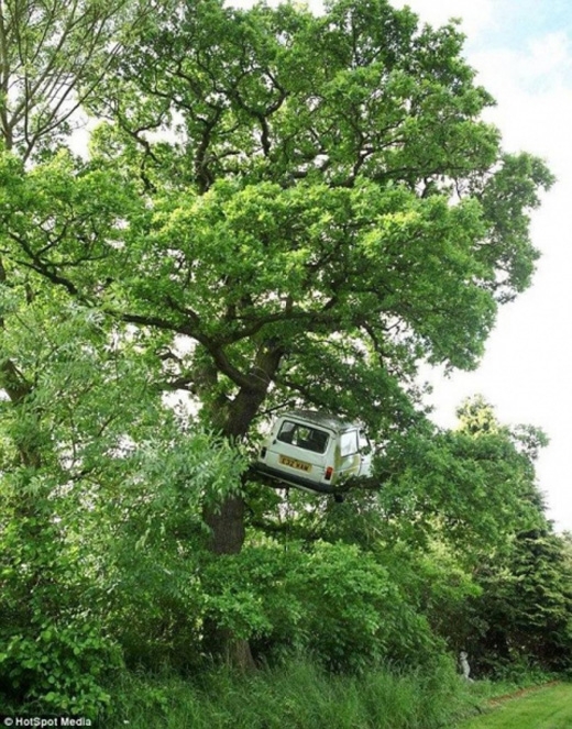 Bằng cách nào chiếc ô tô đã leo lên được mái nhà?