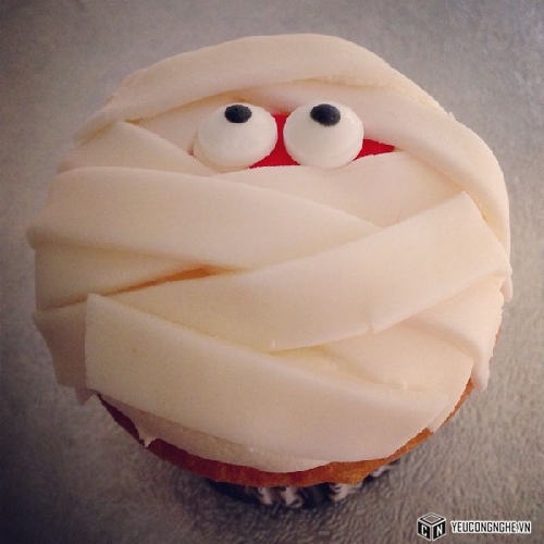 13. Bánh cupcake xác ướp với những dải băng trắng.
