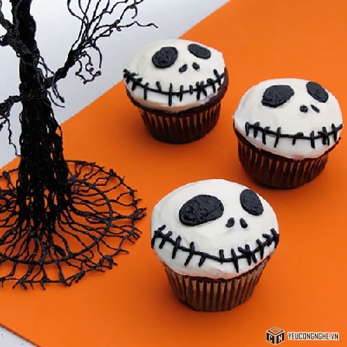 9. Bánh cupcake hình gương mặt nhân vật Jack Skellington.