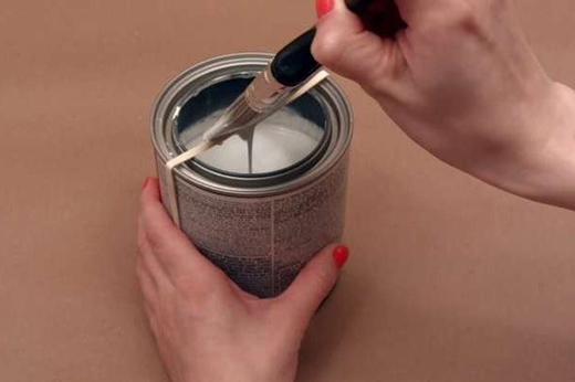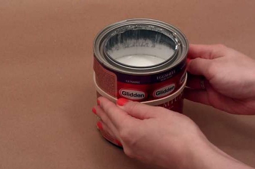 Hãy buộc sợi thun dọc theo lon sơn và tạo thành một chiếc cầu treo bắc qua miệng lon. Bạn vừa không làm dính bẩn ra miệng lon, lại có thể tiết kiệm do sơn dư sẽ nhiễu lại vào hộp.