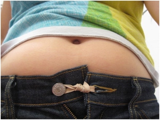 Biến chiếc quần jeans thường ngày thành chiếc quần jeans dành cho bà bầu đơn giản chỉ bằng sợi dây thun. Hoặc nếu bạn tăng cân bất ngờ thì cách này cũng rất hữu hiệu đấy.