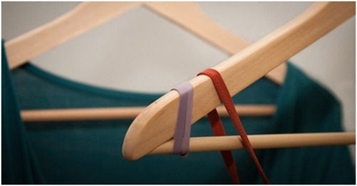 Giữ cho quần áo không bị tuột khỏi móc áo bằng cách buộc dây thun ở 2 đầu móc áo bạn nhé.