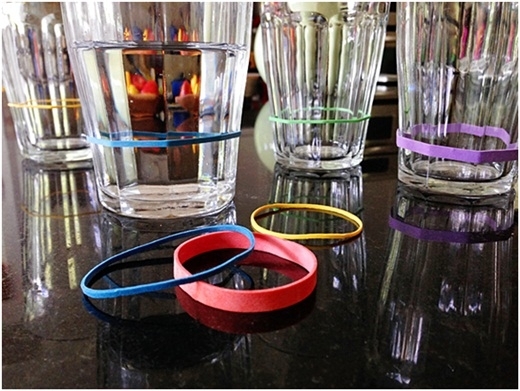 Dùng dây thun để làm dấu những chiếc li trong bữa tiệc như thế này sẽ giúp các bạn không nhầm lẫn li của người khác, mặt khác còn là một món trang trí rất bắt mắt mà không tốn kém nữa.