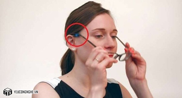Bạn hãy cột thun vào phía đuôi của hai bên gọng kính để tạo thành cái khấc giúp kính được cố định ở tai, không bị tuột hay rơi ra khi vận động mạnh.