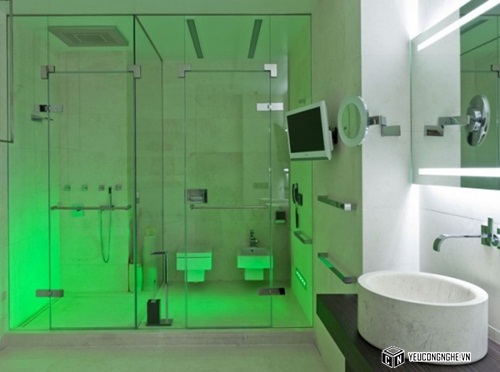 Phòng tắm tương lai và nhỏ gọn này có một trong những hệ thống chiếu sáng tốt nhất mà bạn sẽ thấy.