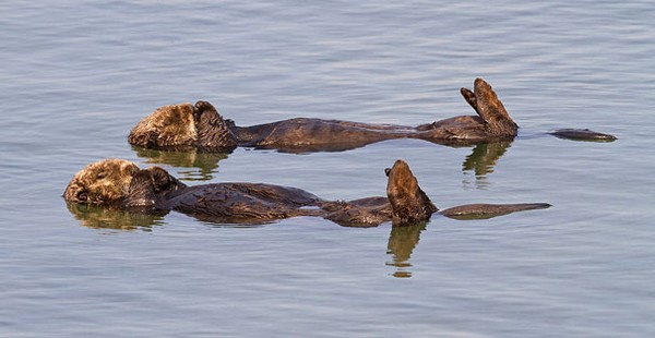 22. Đôi rái cá nằm dài trên mặt nước.
