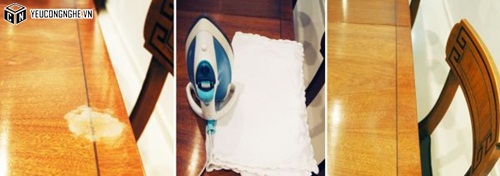 Nếu bạn nhìn thấy những vết mốc màu trắng trên đồ nội thất nhà bạn, để loại bỏ chúng, bạn sẽ phải sử dụng sức nóng cao và độ ẩm. Đặt vài lớp vải chồng lên nhau và phun nước lên, sau đó đặt chúng trên các vết bẩn và dùng bàn là để ủi trong khoảng 15 giây. (Tìm thấy trên littlegreennotebook)