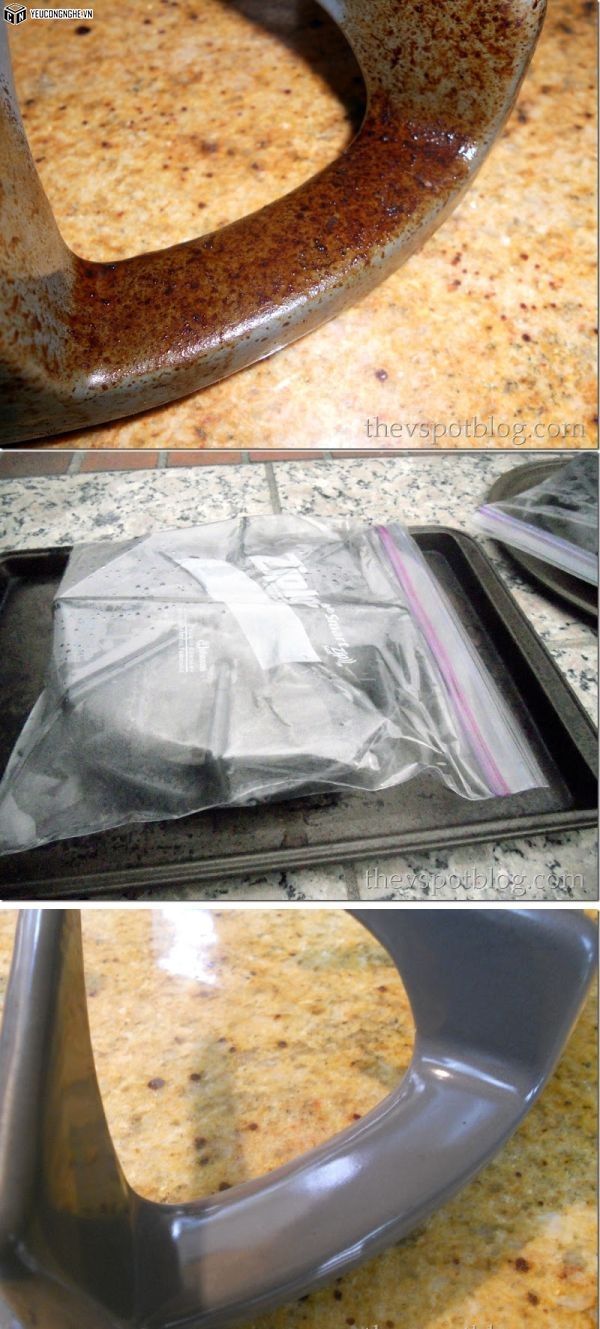 Nếu bạn không thường xuyên dọn dẹp, bếp ga sẽ trông rất bẩn đến nỗi không ai dám nhìn. Vì vậy, những gì bạn có thể làm gì? Rất đơn giản, bạn hãy làm sạch bếp với ammoniac. Cho ¼ chén amoniac vào túi ni lông rồi ngâm kiềng bếp ga trong đó qua đêm. Sau đó lau sạch nó bằng một miếng bọt biển.