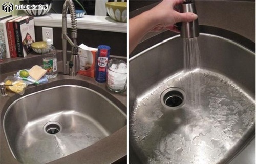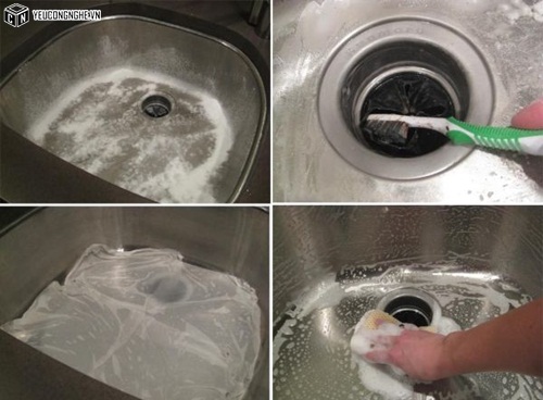 Làm sạch bồn rửa nhà bạn bằng cách sử dụng các thành phần sau đây: nước rửa chén, giấm trắng, bột soda, muối mỏ, chanh và nước đá. Bạn cũng sẽ cần một miếng giẻ cũ, một bàn chải đánh răng và một miếng bọt biển mềm. Rửa sạch bồn rửa, sau đó rắc bột soda lên bề mặt. Loại bỏ các chất bẩn với một bàn chải đánh răng ngâm trong bột soda hoặc xà phòng.
