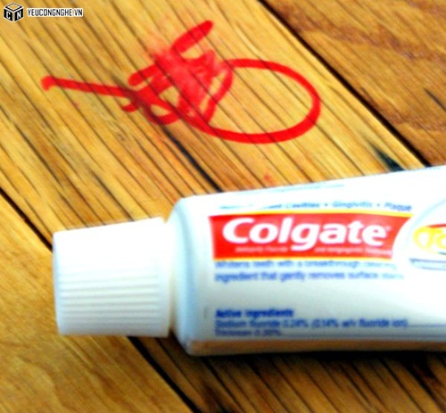 Nếu không may bé yêu nhà bạn nghịch làm bẩn sàn nhà mà chất tẩy rửa thông thường không thể giải quyết được. Bạn yên tâm, chúng tôi sẽ giúp bạn. Đầu tiên, bạn thoa mộ lớp kem đánh răng trắng vào chỗ bẩn và chà xát với một miếng vải hoặc khăn giấy ướt.Vết bẩn sẽ biến mất ngay lập tức