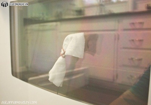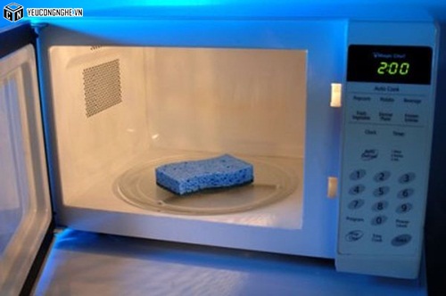 Thật đơn giản, bạn chỉ cần đặt miếng bọt biển vào lò vi sóng trong khoảng 5 phút. Sau đó lau sạch lại bằng nước lau bếp, miếng bọt biển sẽ giết chết gần hết tất cả các vi trùng.
