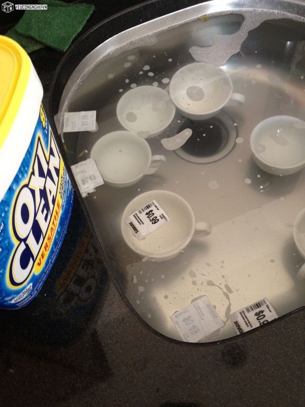 4.Xóa nhãn mác trên sản phẩm bằng Oxiclean