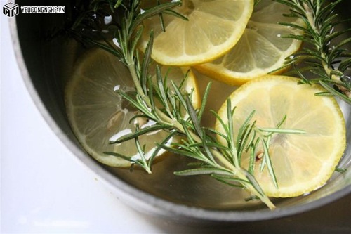 Bạn cần một chiếc chậu thủy tinh nhỏ nhắn, đổ ít nước sạch vào, sau đó cho thêm chanh và một vài cành lá hương thảo. Thêm 1-2 muỗng cà phê vani và để cho hỗn hợp sôi nhẹ,để mùi hương lan tỏa cả ngày dài.