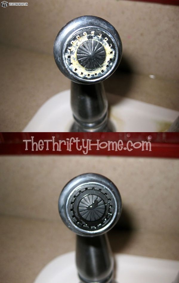 Các chất rắn thường tích tụ lại ở trên và xung quang vòi nước hoặc những nơi khác không phải là điều bạn muốn nhìn thấy. Nhưng bạn có thể dễ dàng loại bỏ chúng chỉ bằng giấm. Nếu đồ vật là mặt phẳng, bạn đổ một ít giấm và để cho nó trong khoảng 20 phút. Đối với các vòi nước, bạn có thể sử dụng khăn giấy ngâm trong giấm.