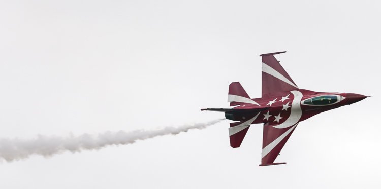 Chú ý rằng tất cả mọi thứ trong bức ảnh này đều sắc nét và không hề có vết mờ chuyển động. Điều này là do ảnh được chụp với tốc độ màn trập nhanh (cụ thể với ảnh này là 1/2000 giây), bởi vì đối tượng chụp là chiếc máy bay đang di chuyển rất nhanh, một tốc độ màn trập nhanh hơn so với thông thường là điều cần thiết.