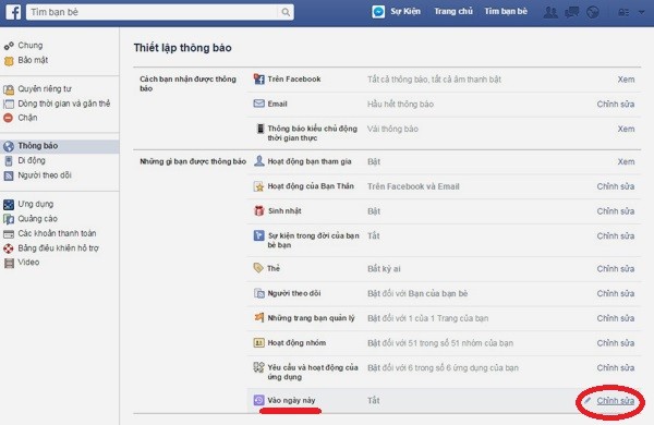 Bước 3: Bấm đường dẫn Chỉnh sửa của mục Vào ngày này.